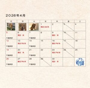 2026年4月獣医師出勤表です👨‍⚕️👨‍⚕️