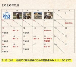 2026年5月獣医師出勤表です👨⚕️👨⚕️